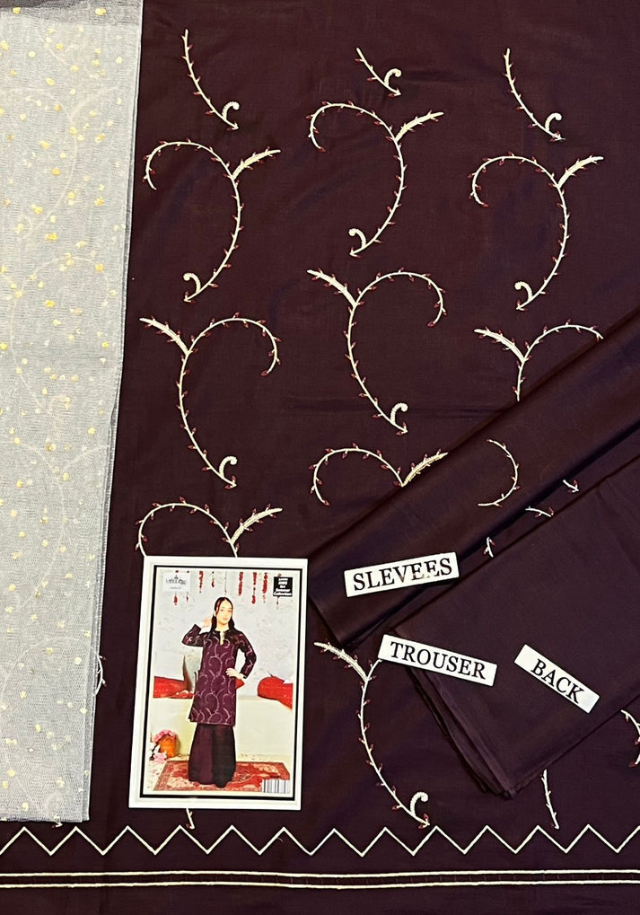 Embroidered Lawn Shirt 2.25 Yards With Embroidered Patches