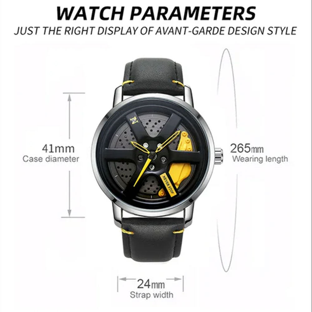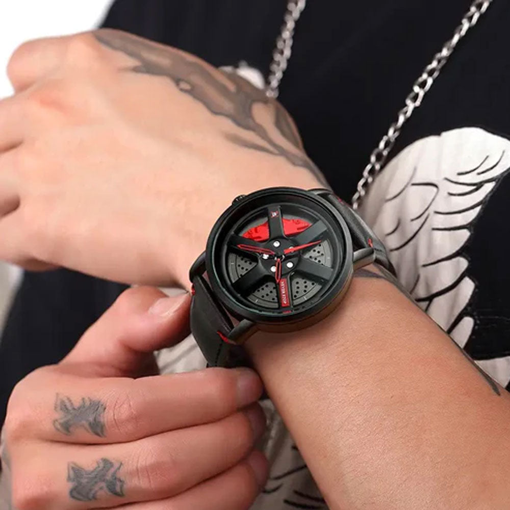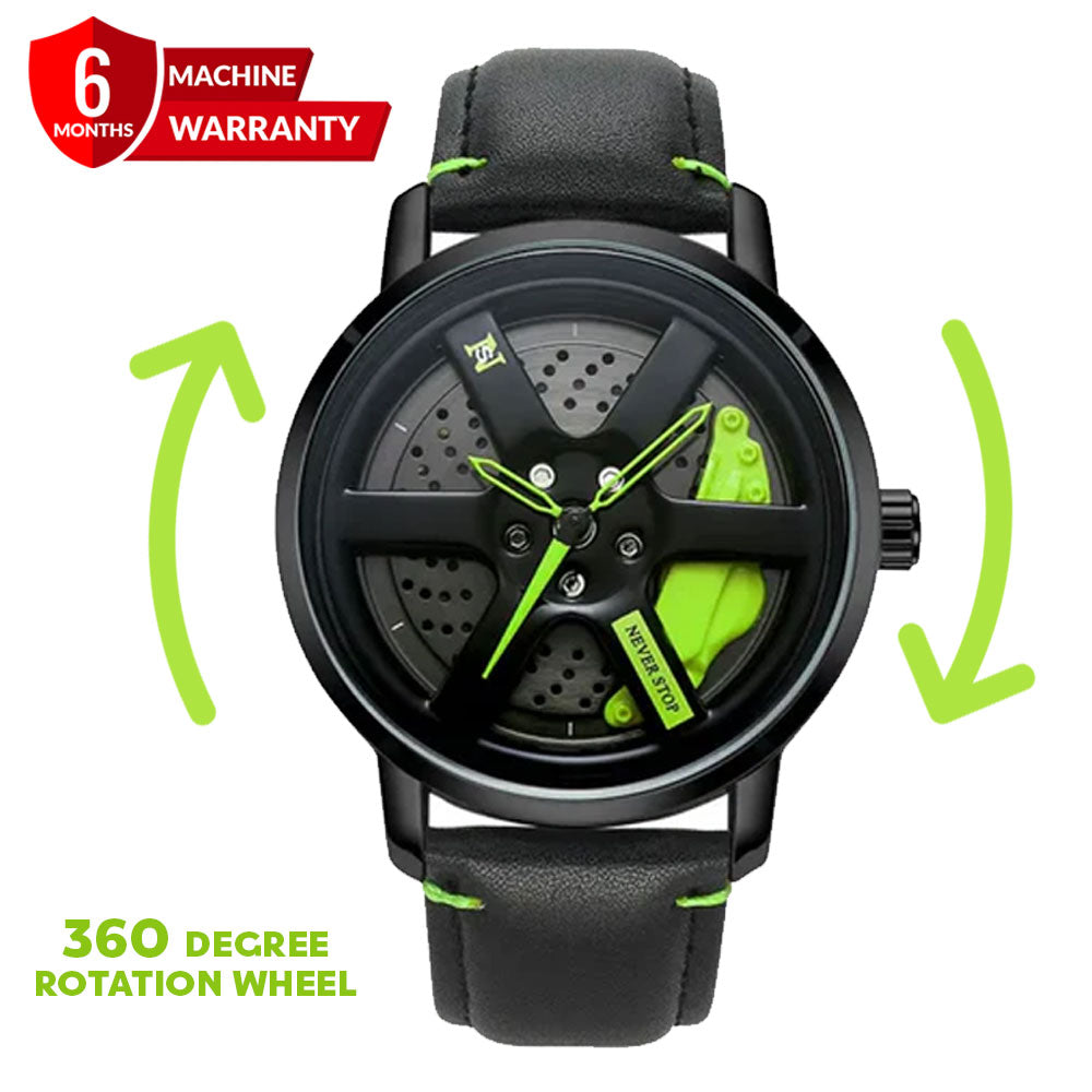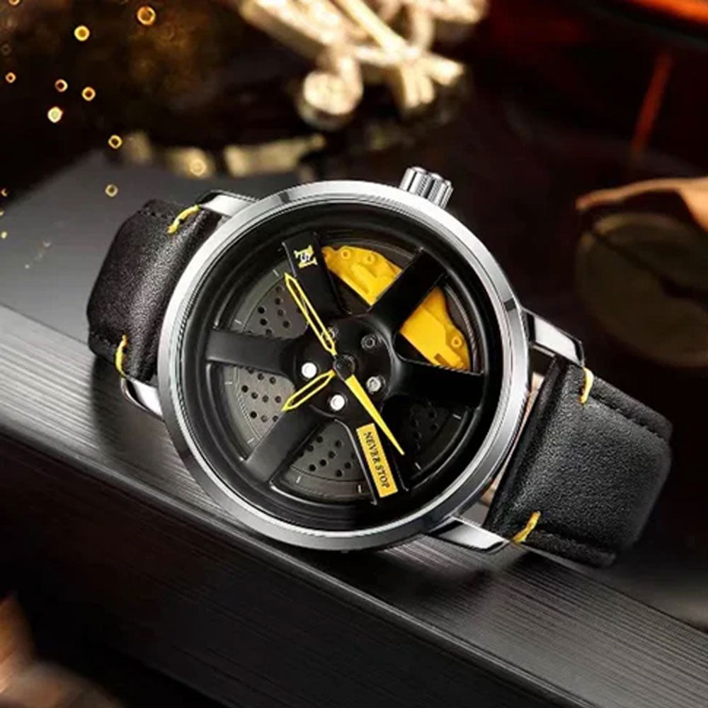 NS - Never Stop Watch With Rotating Wheel And Leather Strap