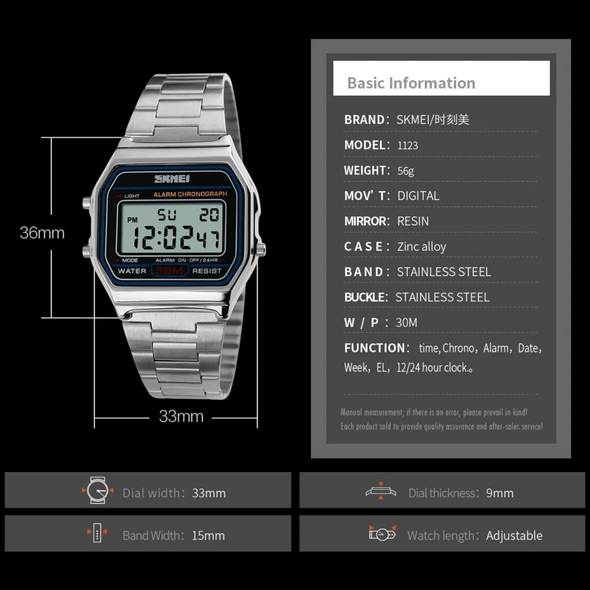 SKMEI-1123 Digital Display Stainless Steel Made Water Resistant Watch For Men