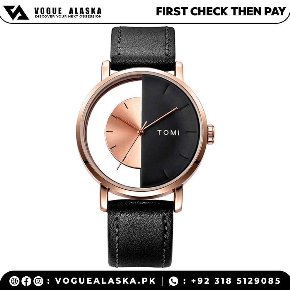 TOMI T-080 Transparent Design Leather Strap Watch For Men